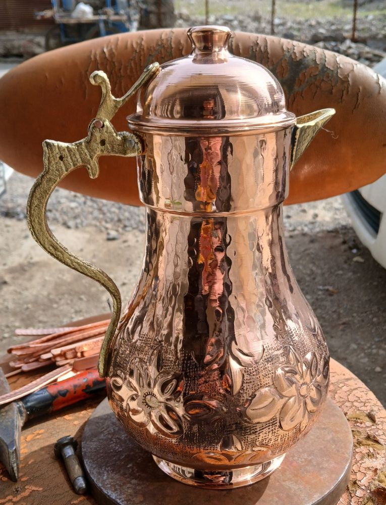 0.80mm, 2 litre hacim. Bakır elde dövmeli sürahi