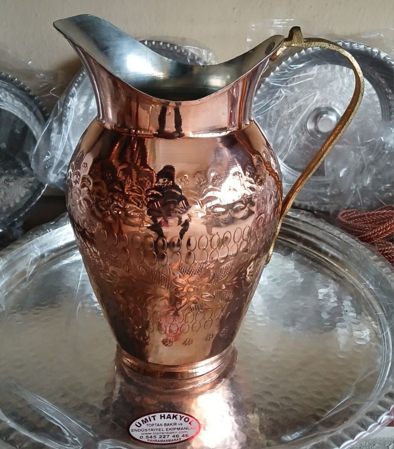 1milim, 2 litre hacimli bakır işlemeli sürahi